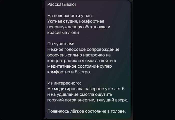 Личные сессии, медитации (индивидуальный или групповой формат) а так же ретриты.